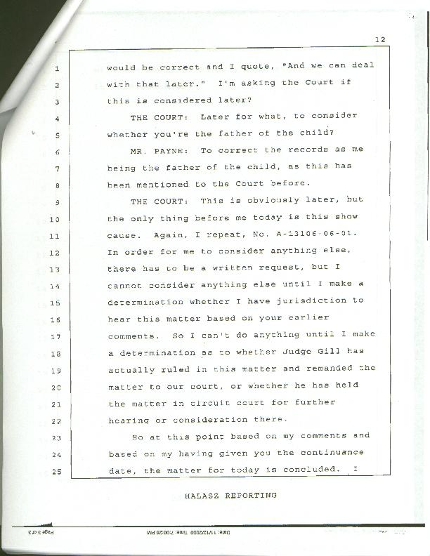 We appeared in front of Judge Davis briefly to find that she could not hear the show cause, that was served on me five minutes before this hearing, due to jurisdictional problems, as the order in which it refers was appealed to Judge Gill of a higher court. The Capias was dismissed first thing.