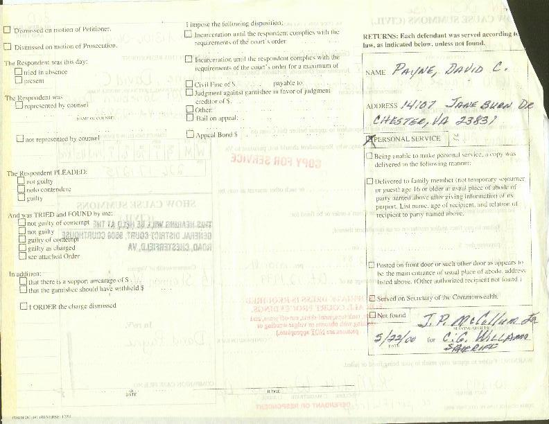 Notice the date on the show cause here for date of service (bottom right). This was served on me months after I was wrongfully incarcerated, literally five minutes before the hearing of this case.